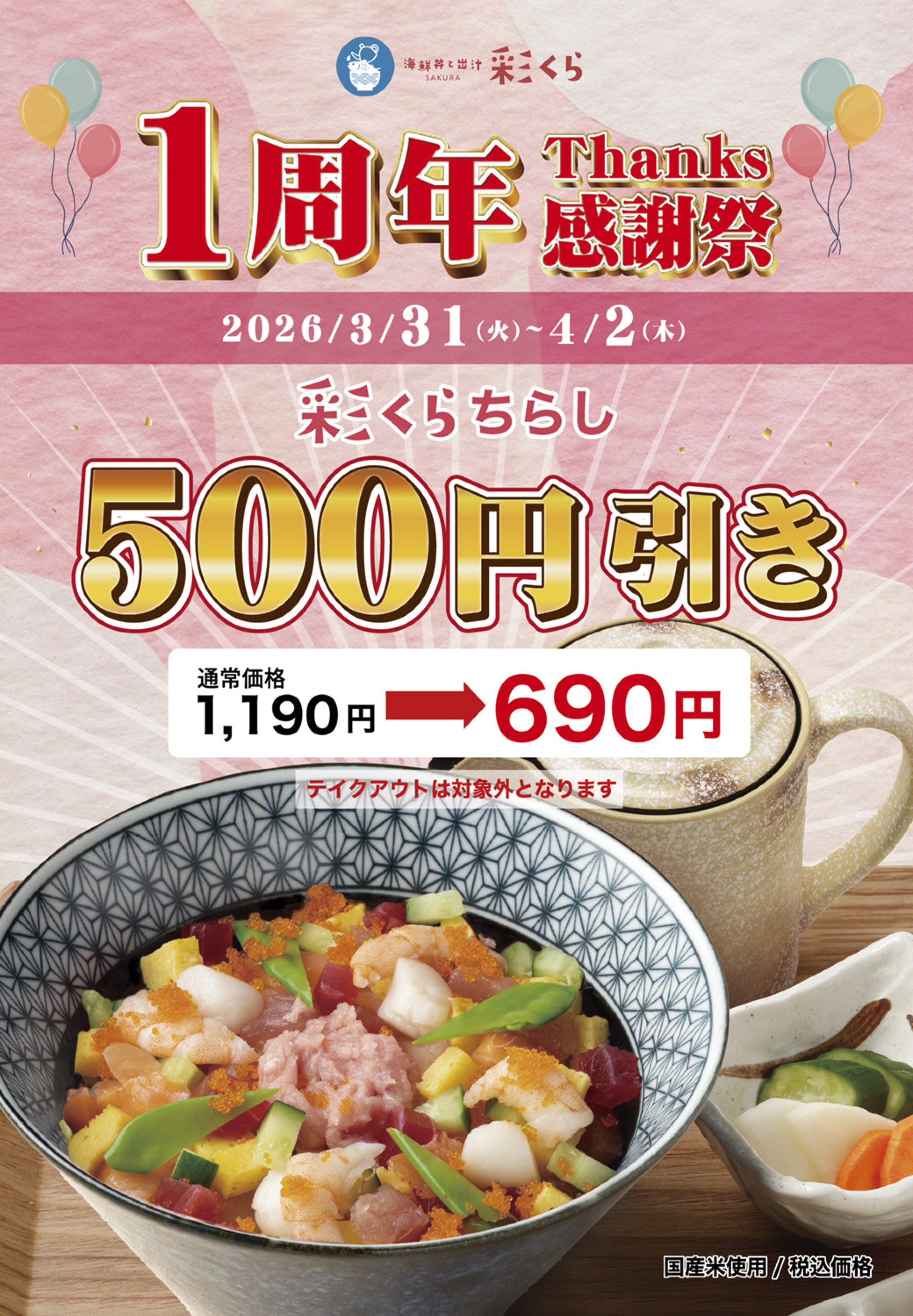 - 新店「海鮮丼と出汁 彩くら 小田急海老名駅店」が3月31日(月)にグランドオープン!
