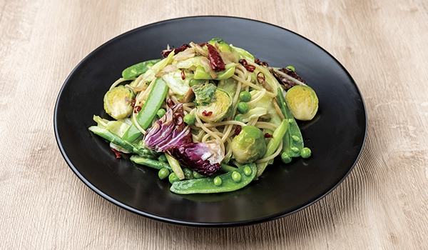 There are always more than 30 kinds of dishes on the menu, including the famous “Agrio Olio (with bacon)” topped with thick- sliced bacon, “Carbonara” made from the authentic Italian recipe, and “Bucaniera” with tomato sauce containing clams, shrimp, squid and other ingredients. In addition to the spaghetti menu, “the green pea salad” is also a popular menu item.