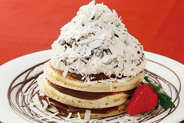 Our special whipped cream, which is generously topped with freshly baked pancakes and fruit, is light and fluffy.