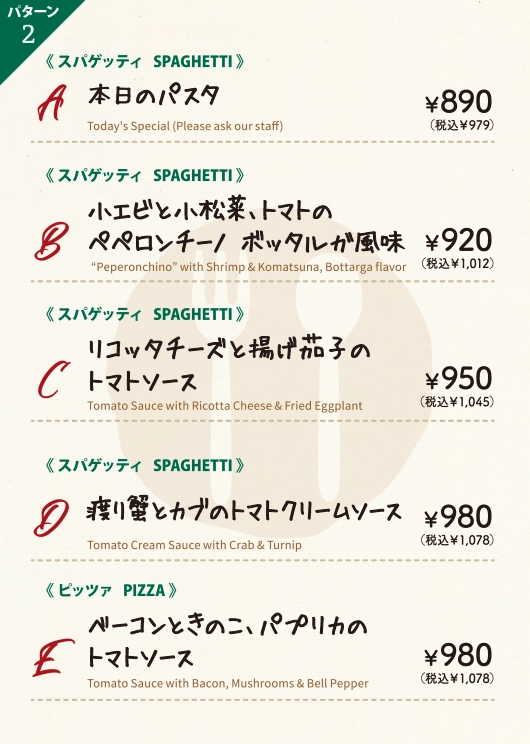 - 4月14日(月)より、「パスタナポレターナ松戸六実店」は毎月第2月曜日を定休日(月曜祝日の際は翌日定休)とさせていただきます。